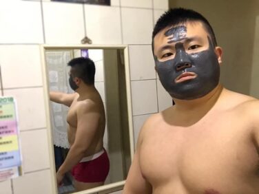 デブ画像 【デブ画像】いつものメガネ君がメガネを外して顔パック