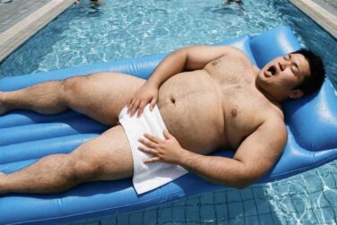 デブ画像 【デブ画像】プールでリラックスしている巨漢くんはAI作成?