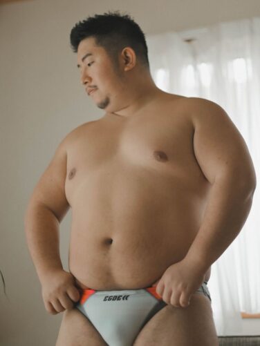 【デブ画像】ガチムチのガタイにはピチピチの競パンが似合う!
