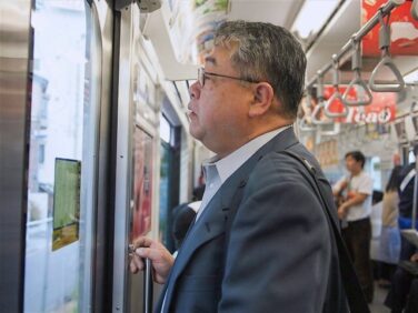 【デブ画像】電車で通勤中の中年リーマンさん、お疲れ様です!