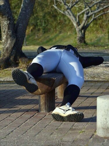 デブ画像 【デブ画像】野球部員がベンチで寝ちゃっているのかな