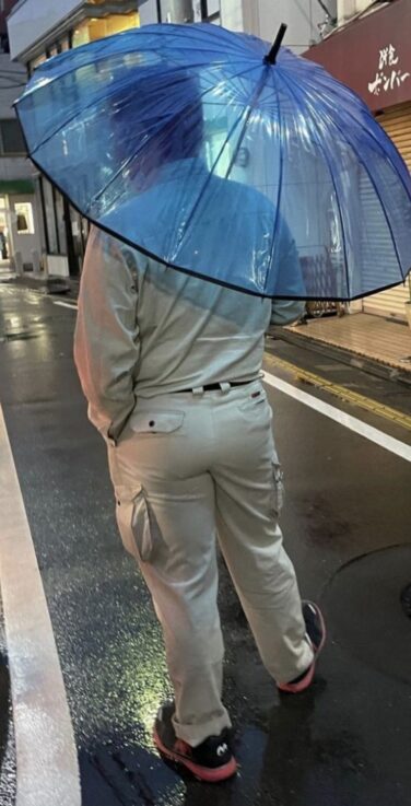 デブ画像 【デブ画像】傘を差した作業着姿のムチケツ兄ちゃん