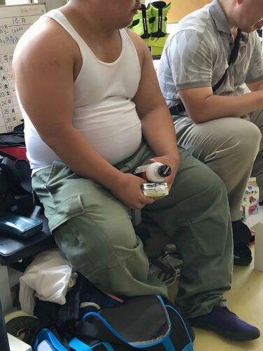 デブ画像 【デブ画像】タンクトップ姿のデブくんは仕事の休憩時間なのかな?
