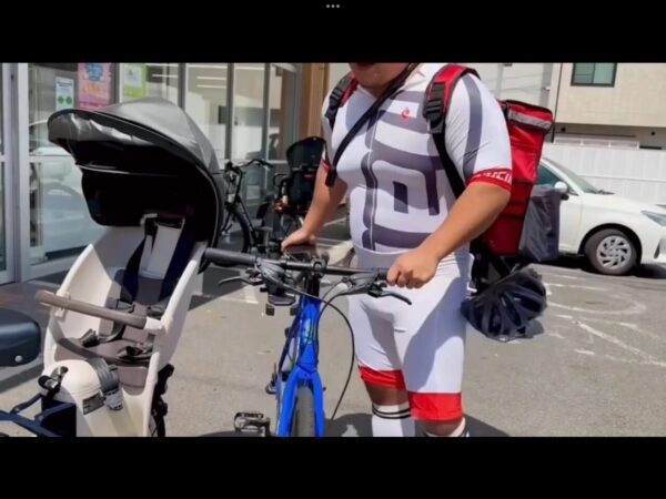 ビブパンツから汗で蒸れた仮性チンコをおったて出してエロエロ宅配、変態デリバリー!