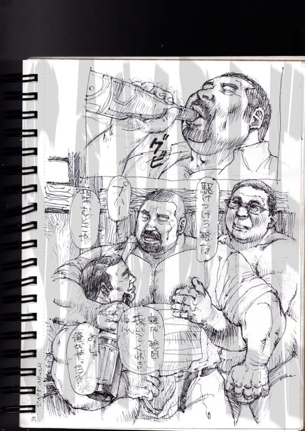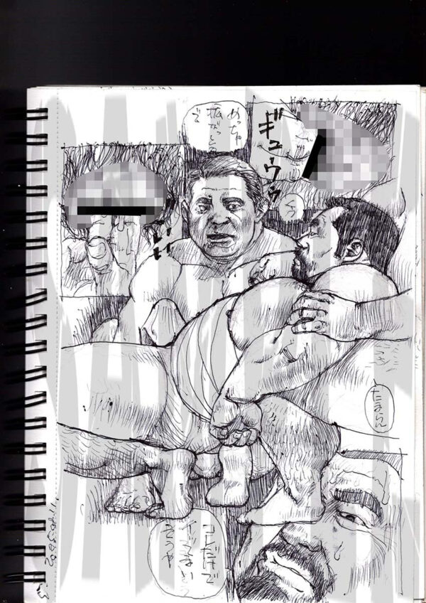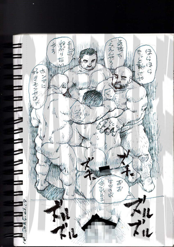 山の物置小屋には数人の男たちが集まっていた。みな互いの身体を貪っている。みだらな行為、みだらな臭い、みだらな熱気で蒸せかえっていた。