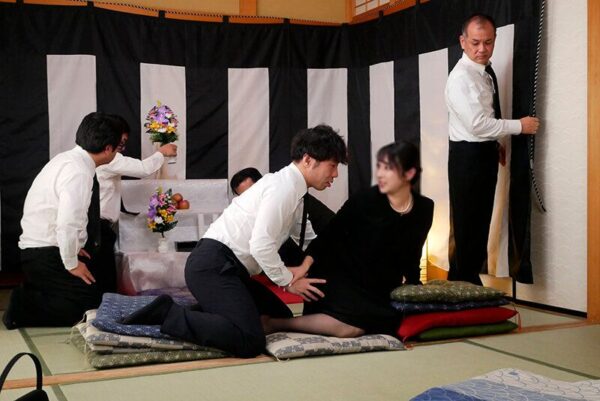 会社上司の葬式に参列したOLのゆいかは同僚のセフレとお通夜中に淫らな行為にいそしんでいたら…それを目撃したほか従業員たちにヤラれてしまう。【漆黒の喪服に白濁精子ぶっかけ】【禁断行為はスリルがあって快感】その夜に従業員たちは白く艶やかな胸を揉みしだき、濃厚接吻と汚チンポで口を汚していく。【ムチムチおっぱい】【ピンクの乳頭を舐めあげる】【黒いパンストをから見え隠れするパンツ】翌日の葬式後も男たちは群がりゆいかを食していく。