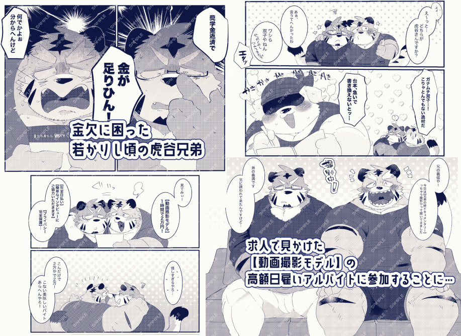 [こけもも] の【双子の関西弁虎おっさんが騙されてAV出演する本】のダウンロード購入