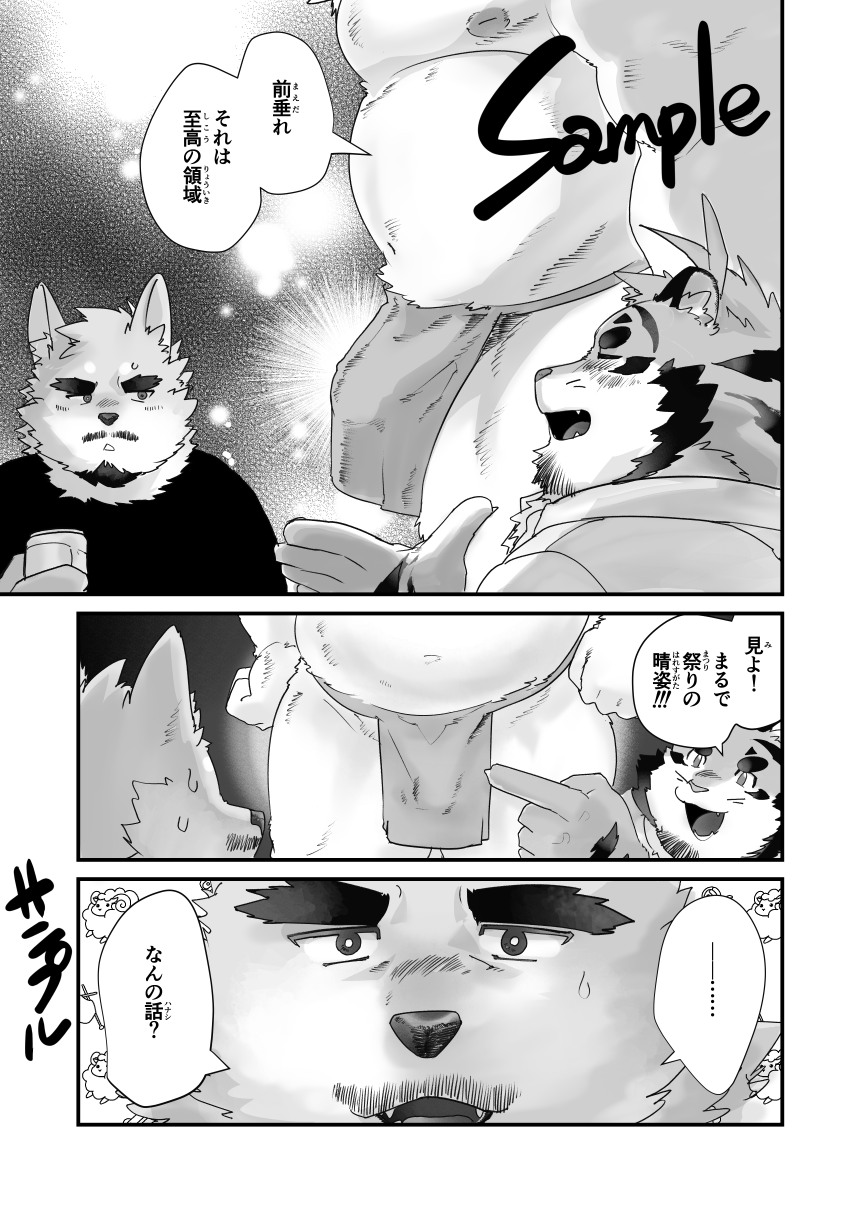 虎くんはまえだれ褌がだ~いすき。宅飲み中に犬くんやドラくんに布教するが……